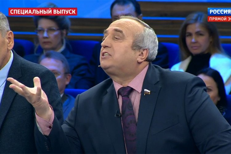" Сначала Клинцевич обратился к своему оппоненту из Украины, политологу Александру Охрименко с деликатным предложением: «рожа, подожди!». А когда тот, улыбаясь, заметил что-то про «традиционное российское хамство», Клинцевич, нисколько не испугавшись Охрименко, который раза в полтора меньше российского парламентария по габаритам, мужественно подошел к нему, вцепился в бороду оппонента и пару раз дернул."---Невероятно, но факт.